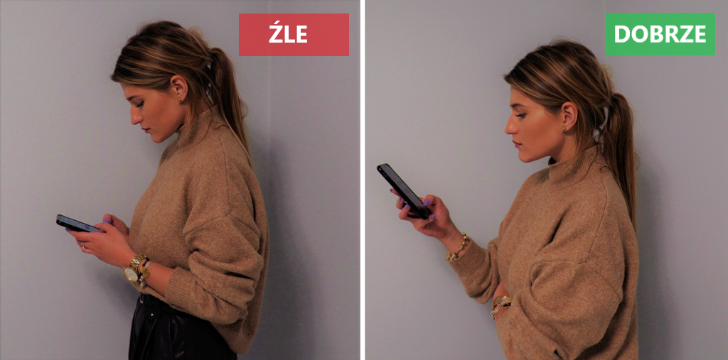 W kontekście rehabilitacji kręgosłupa, a jeszcze bardziej profilaktyki, ogromne znaczenie ma sposób korzystania z telefonu. Długotrwałe pochylanie głowy w dół znacząco zwiększa obciążenie kręgosłupa szyjnego.